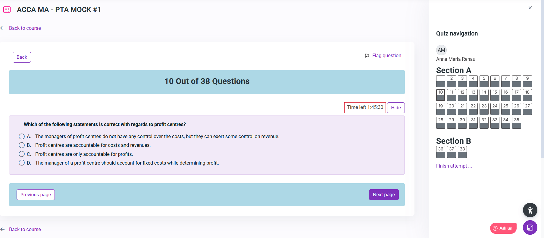 Select from the available options for our ACCA MA mocks: